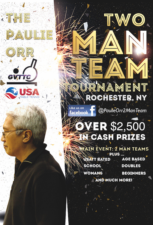 FALL TOURNAMENT NEWS: Stay tuned as we’re locking at an early November 2017 weekend for "The Paulie Orr Two Man Team Tournament”. The main event on Saturday will be a round robin Two-Man Team event playing best of five matches with tie’s being decided by both singles and doubles play. Choose your partner wisely! We’ll be running that tournament at Greece Olympia High School which has fantastic playing conditions! Tournament information will follow soon.