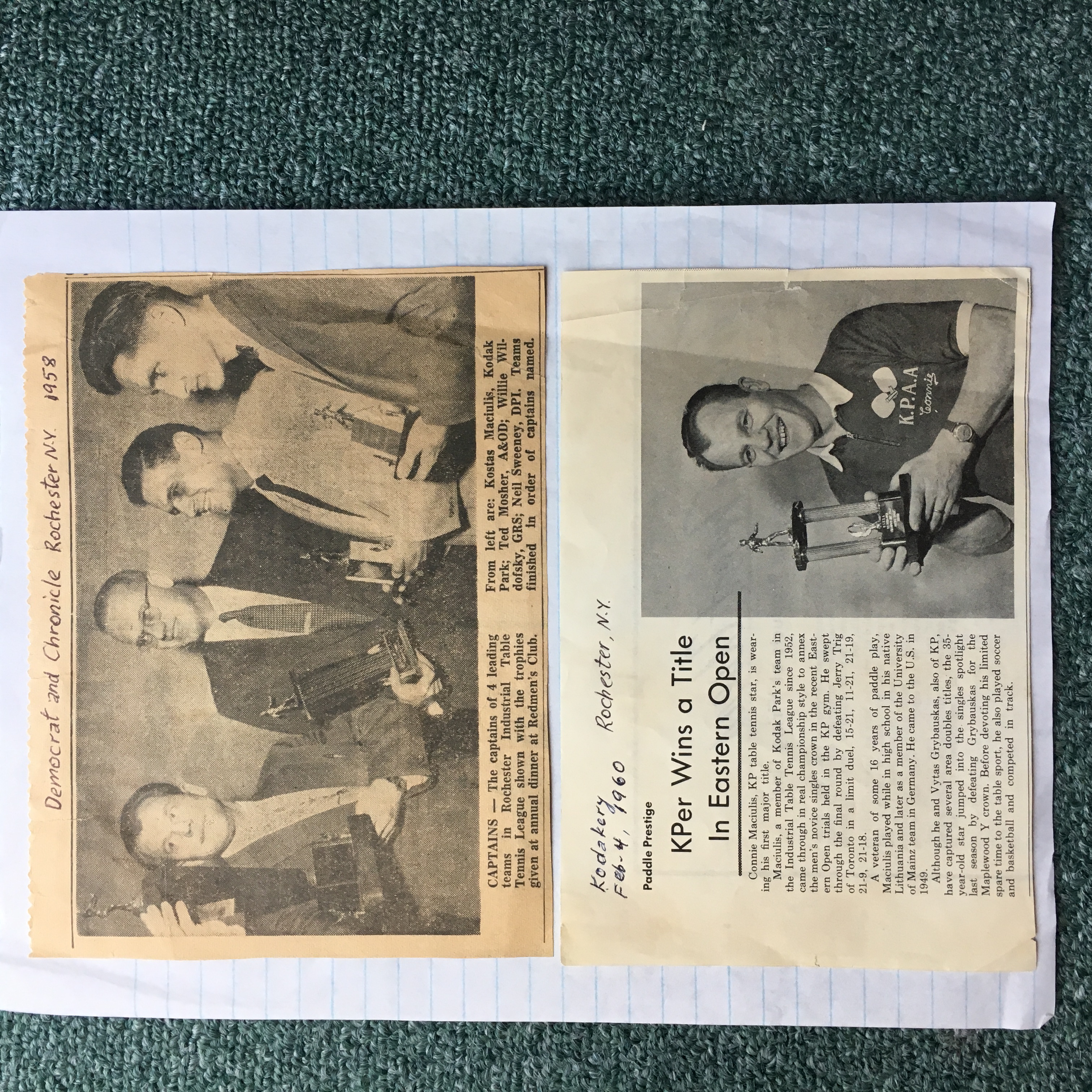Attached below are photos and articles sent to me by Konnie (Kostas) Maciulis, a high quality Lithuanian player who dominated local doubles play in the late 50s and early 60s, as well as winning some singles titles. Konnie led a contingent of Lithuanian men and women who frequented our local tournaments then, including a men's champion, Vytas Grybauskus, and women's champion, Laima (Jonusas) Vosylius.