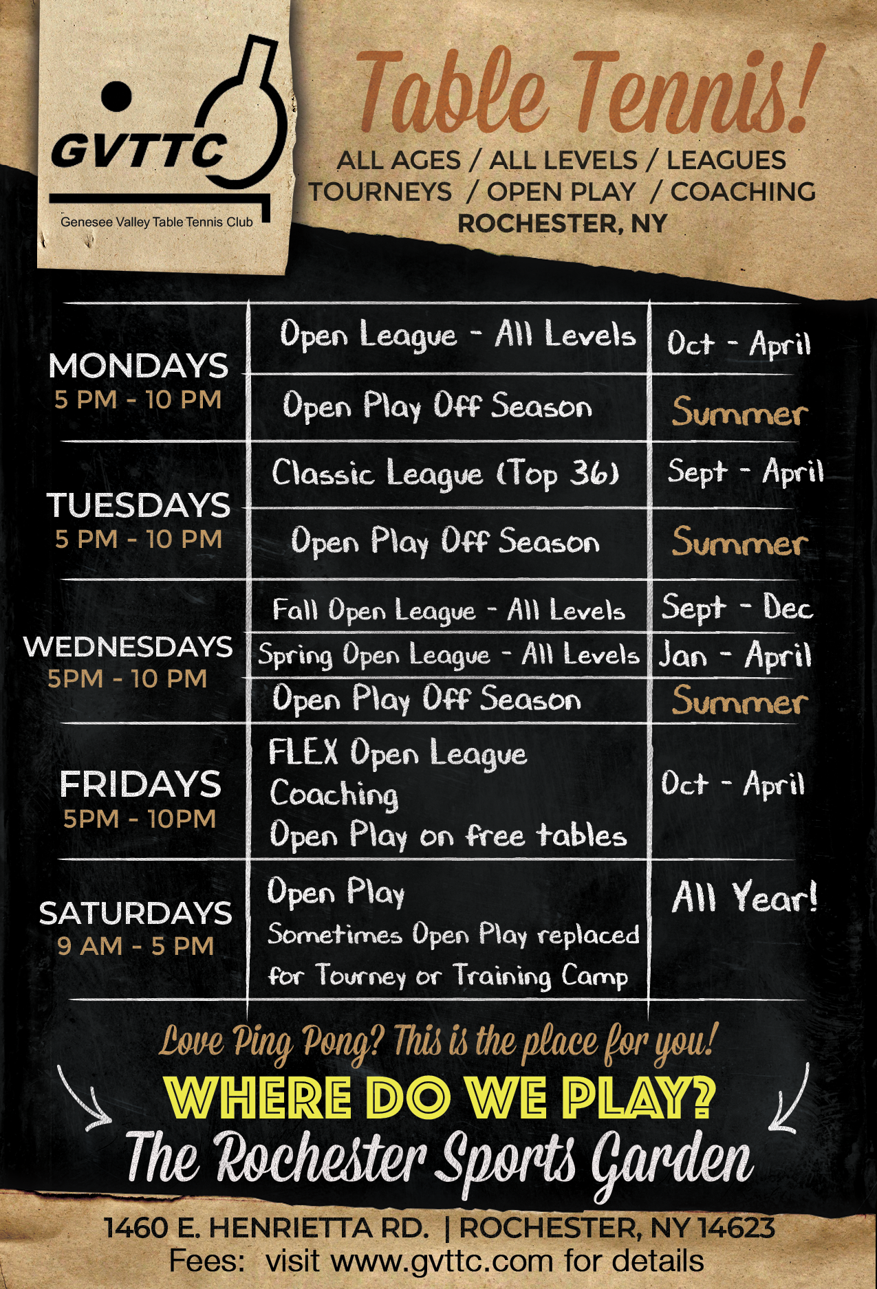 > I’m happy to announce that GVTTC is expanding our play times this season to include Friday nights with an exciting opportunity to get more play time in. Check out the really cool Informational flyer below we put together to make it easier to attract new players. Feel free to forward that image to anyone you want. Let’s grow the sport we all love.
