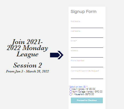 Registration is open until Dec 31st. It will then close so teams can be created and league play starts on January 6th and runs until March 28th. We will follow the currently format.