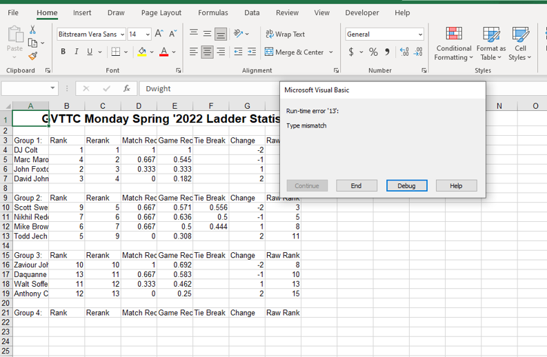 > don’t know why its happening. Going back to prior excels from a few weeks